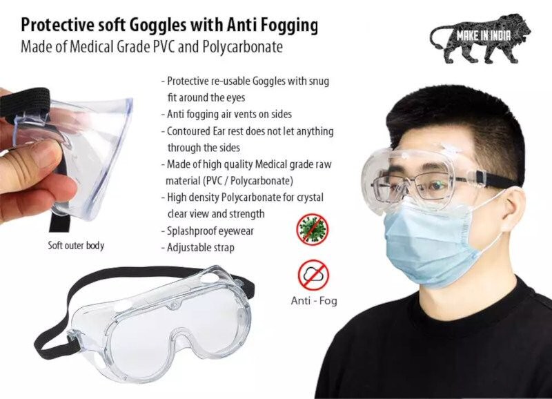 Protective soft Goggles with Anti Fogging | Made of Medical Grade PVC and Polycarbonate