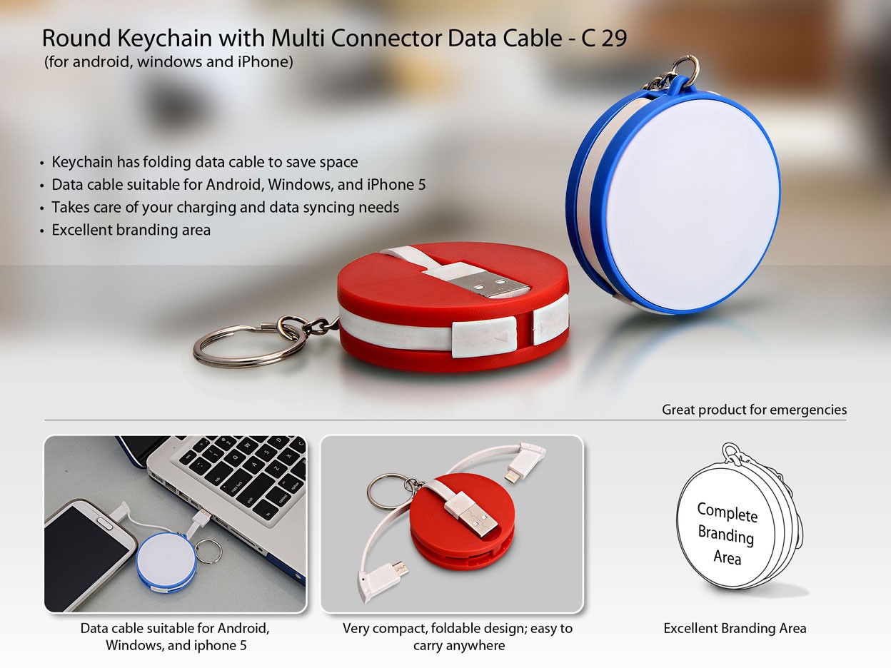 Round data cable with keyring